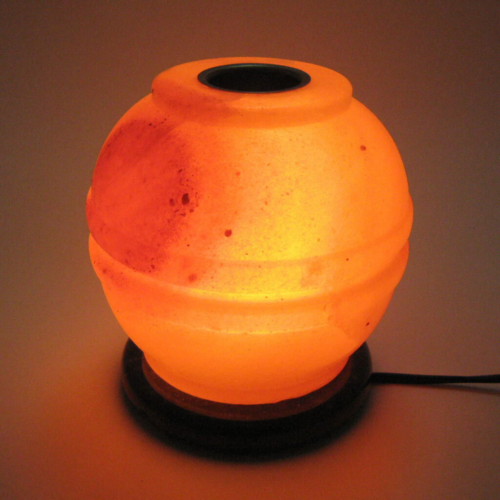 • Himalayan Salt Lamps: Large crystals with a light bulb inside, believed to release negative ions that purify the air. A real lamp will “sweat” in humid environments because salt is naturally hygroscopic (it attracts water). Fake lamps, often made of plastic or dyed glass, will not.